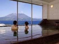 *最上階の展望温泉より眺める桜島!気高く舞い上げる噴煙に大地の息吹を感じられます。